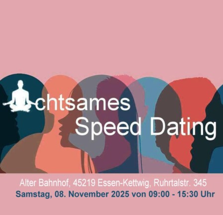 Ein neuartiges Glücksmodell und besondere Achtsamkeitsübungen helfen uns, ganz neutral und absichtslos (ohne Erwartungen) in die 2er-Gespräche zu gehen, ein wichtiges Werkzeug für spätere Beziehungen! Samstag, 08. November 2025 von 09-15:30 Uhr, hier mehr